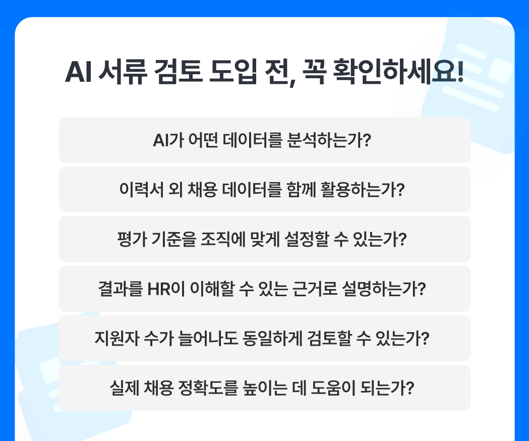 AI μλ₯ κ²ν μ λͺ©μ μ HRμ νλ¨μ λμ νλ κ²μ΄ μλλλ€.